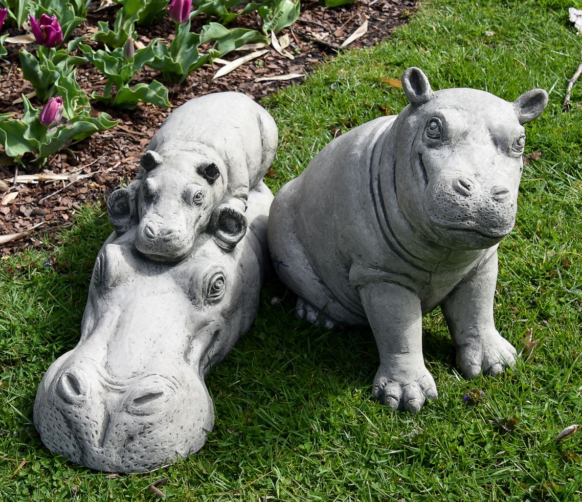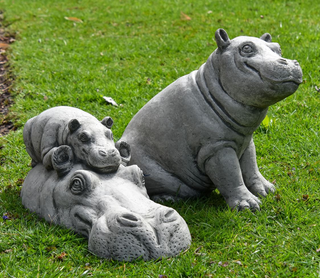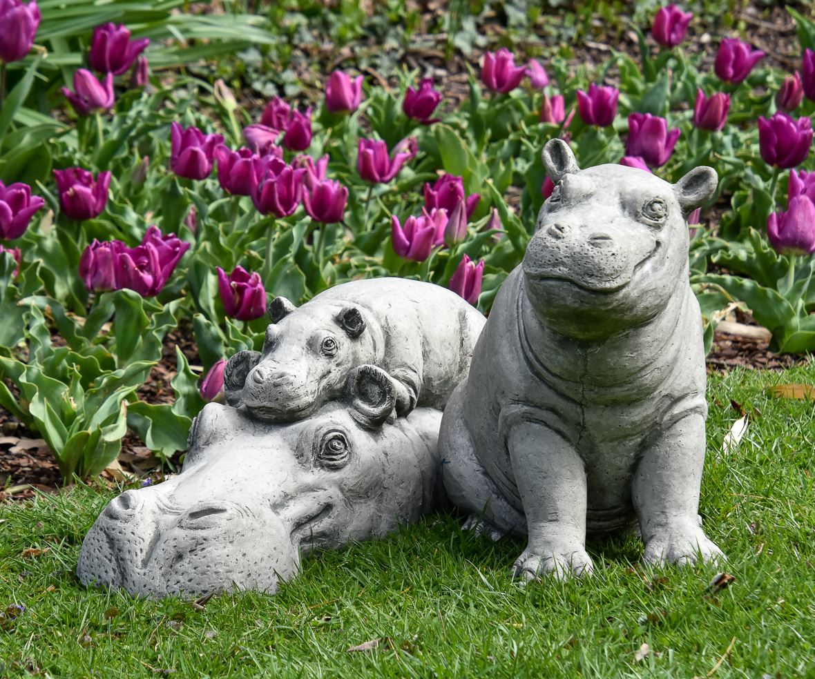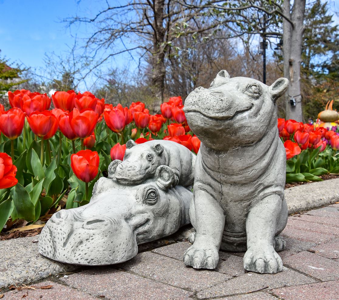 This cast stone statue honors Fritz & Bibi, the beloved brother and mother of Fiona the Hippo. The statue was designed and sculpted by Tom Tsuchiya, a well-known Cincinnati artist who spent weeks capturing the duo's irresistible bond and lovable features. Campania International, a top manufacturer in cast stone statuary is making and pouring statues, one by one, in the US with love and attention to detail. Due to the handmade nature and the use of natural stone, there can be slight variances in color. Dimensions: 7" H x 20" L x 7.25" W Weight: 39 lbs Flat Rate Shipping $60