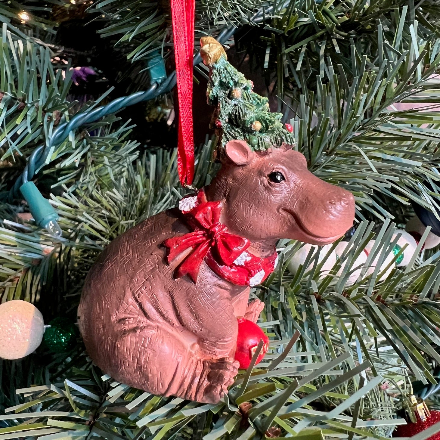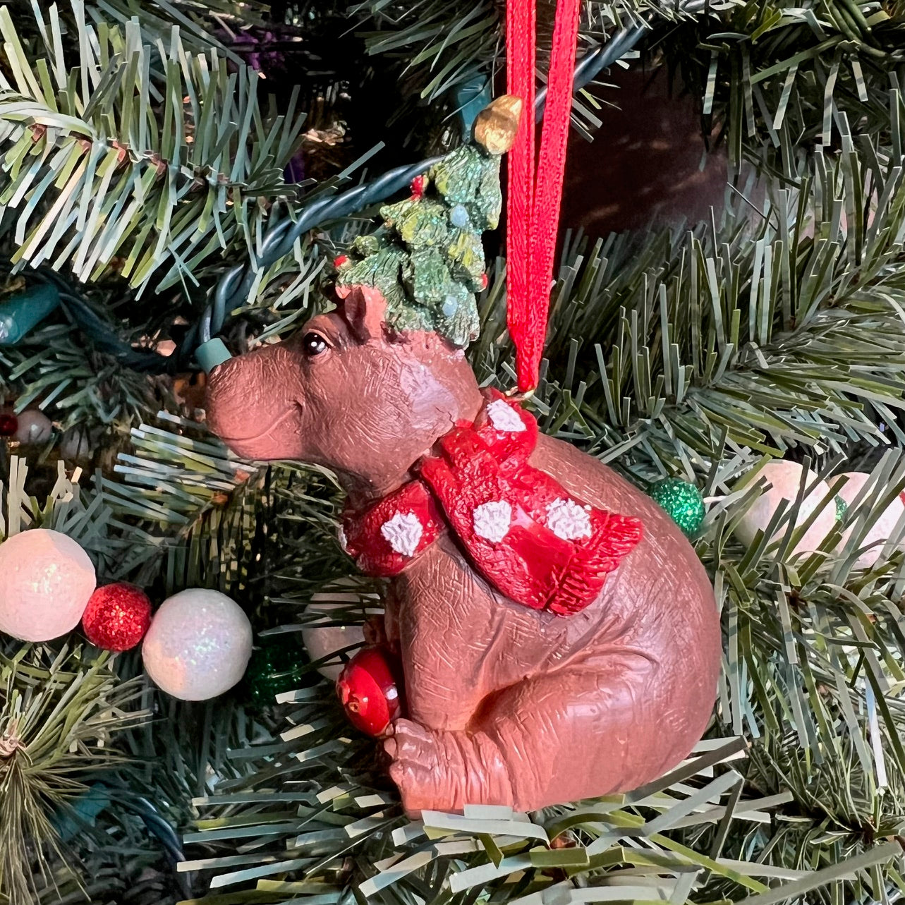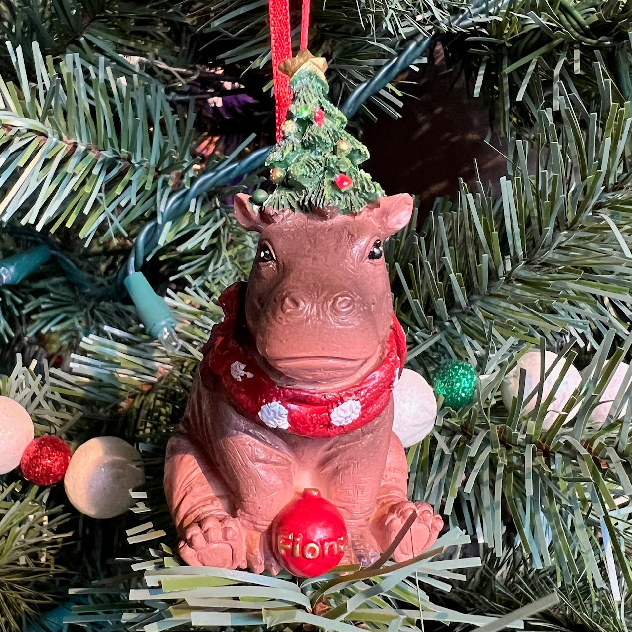 Cincinnati Zoo & Botanical Garden's world famous hippo Fiona - her 2024 ornament all decked out for the holiday season with Christmas tree hat. Custom made from resin with hand-painted details from Kurt Adler. A perfect gift for all of the Fiona fans out there!